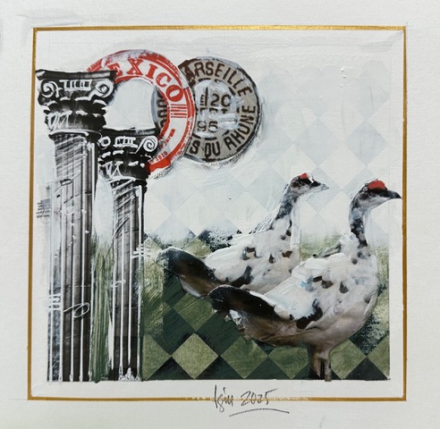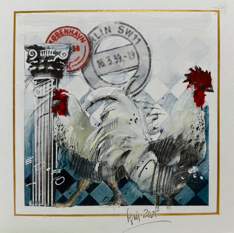 ENN ÓÐUR (2023) rifjar upp þessa tíma og er í leiðinni beint framhald þeirrar sýningar. Og þrátt fyrir að myndefnið sé áfram mannfólk (og meira til) er það ekki síður gleðin við að mála, sem einkennir verkin, en hér erum að ræða olíuverk á striga í bland við pappírsklipp.